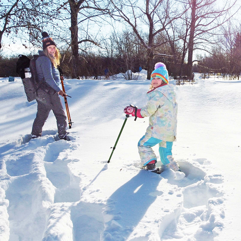 Echo Valley Provincial Park has six designated snowshoeing trails. Exploring off the trails, through the trees and within the closed campgrounds is also fun. I took my six-year-old for an outdoor date in the park and was surprised to learn that its visitor centre offers rentals for younger kids. We didn’t make it far but enjoyed walking in the deep snow amongst the trees for a couple hours.
