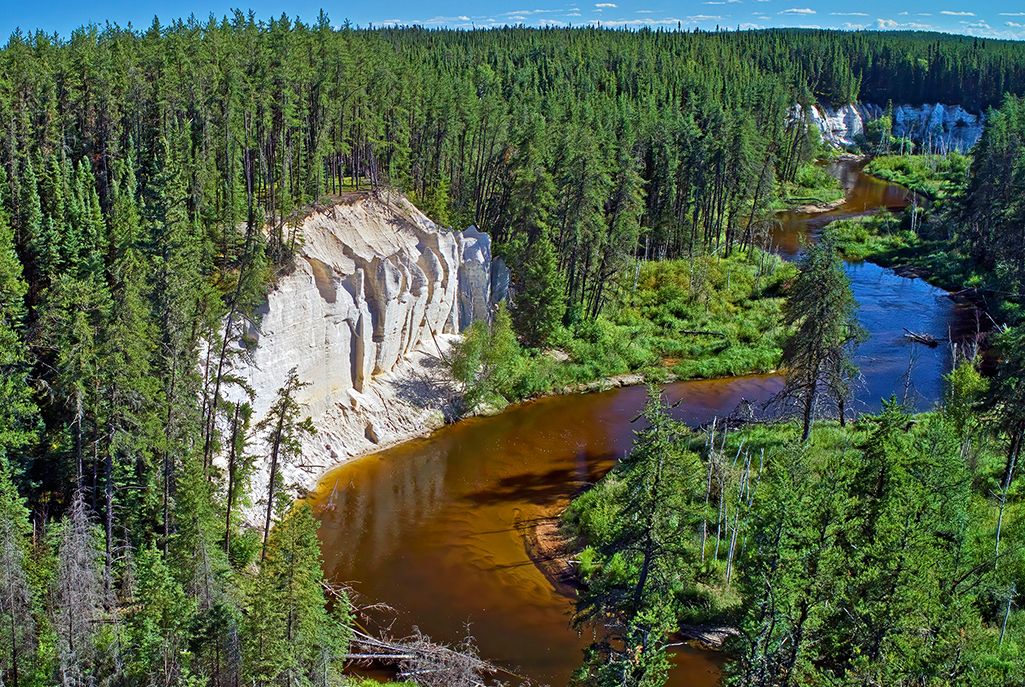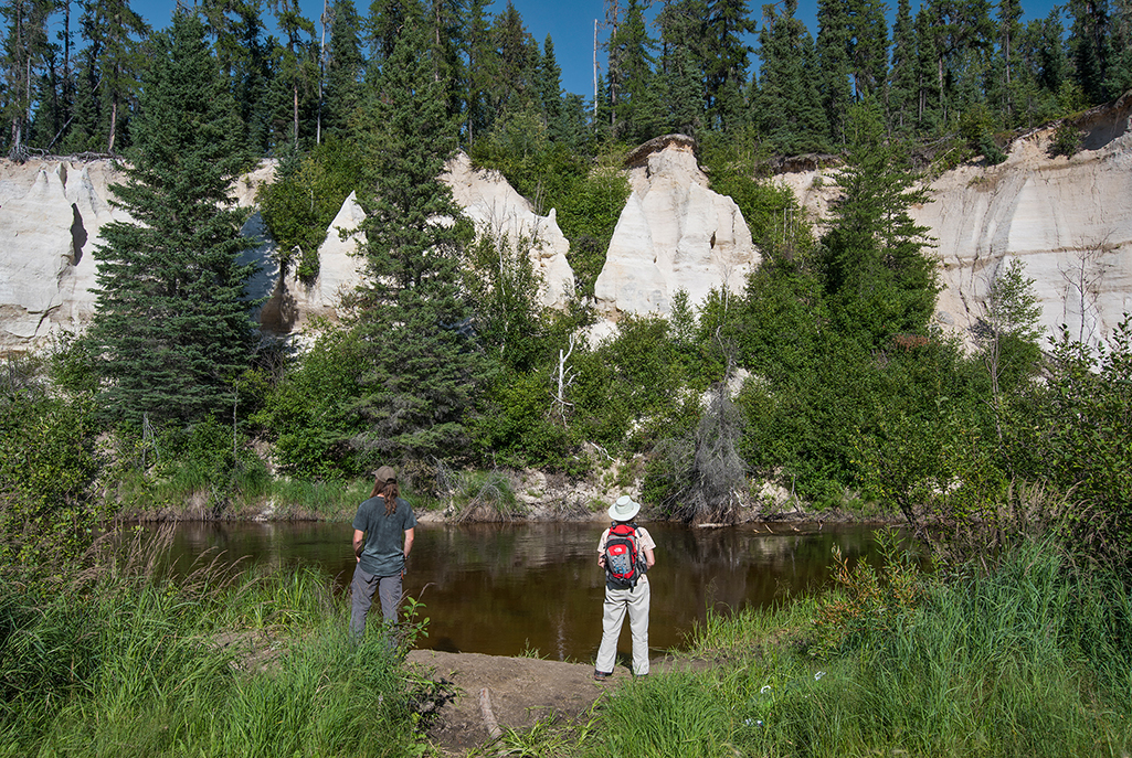 The Nipekamew Sand Cliffs are brilliant white cliffs and pillars, some as high as 23 m, rise straight from the banks of the narrow Nipekamew River. Sediments deposited here over 120 million years ago have been eroded and exposed by the river to form one of Saskatchewan’s most unusual landscapes. These fragile formations have been sculpted into a variety of shapes and contours, from perfectly vertical flat-faced cliffs to oddly-shaped spires resembling abstract art.