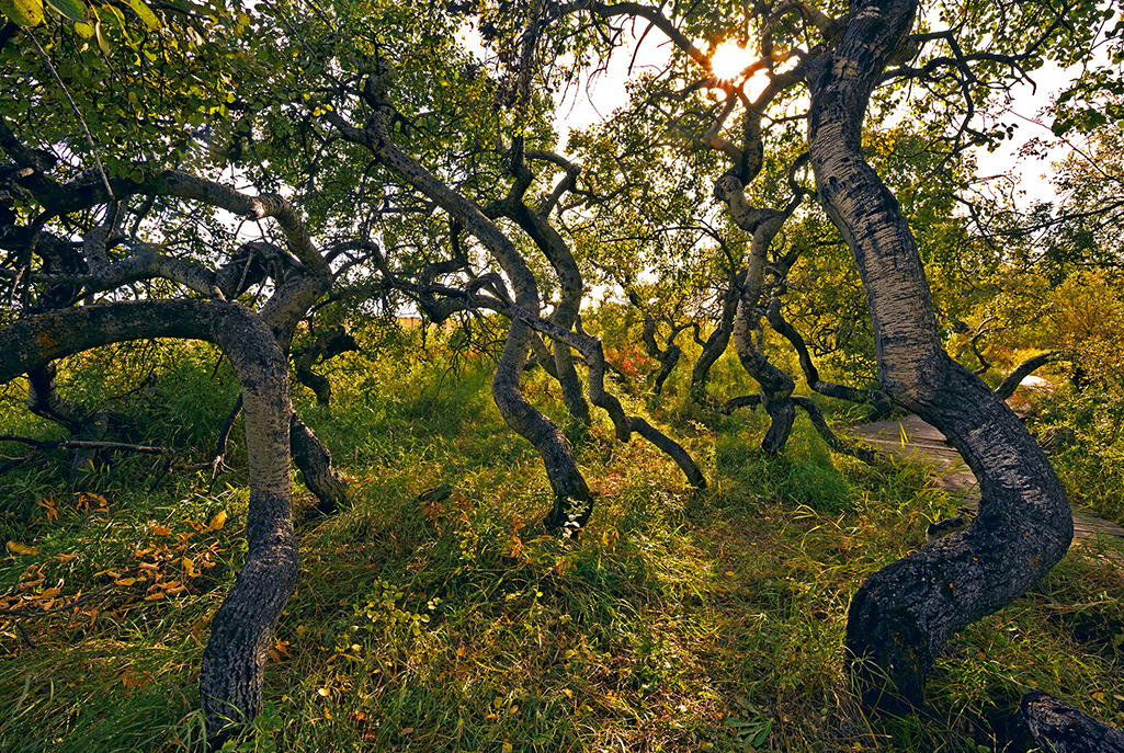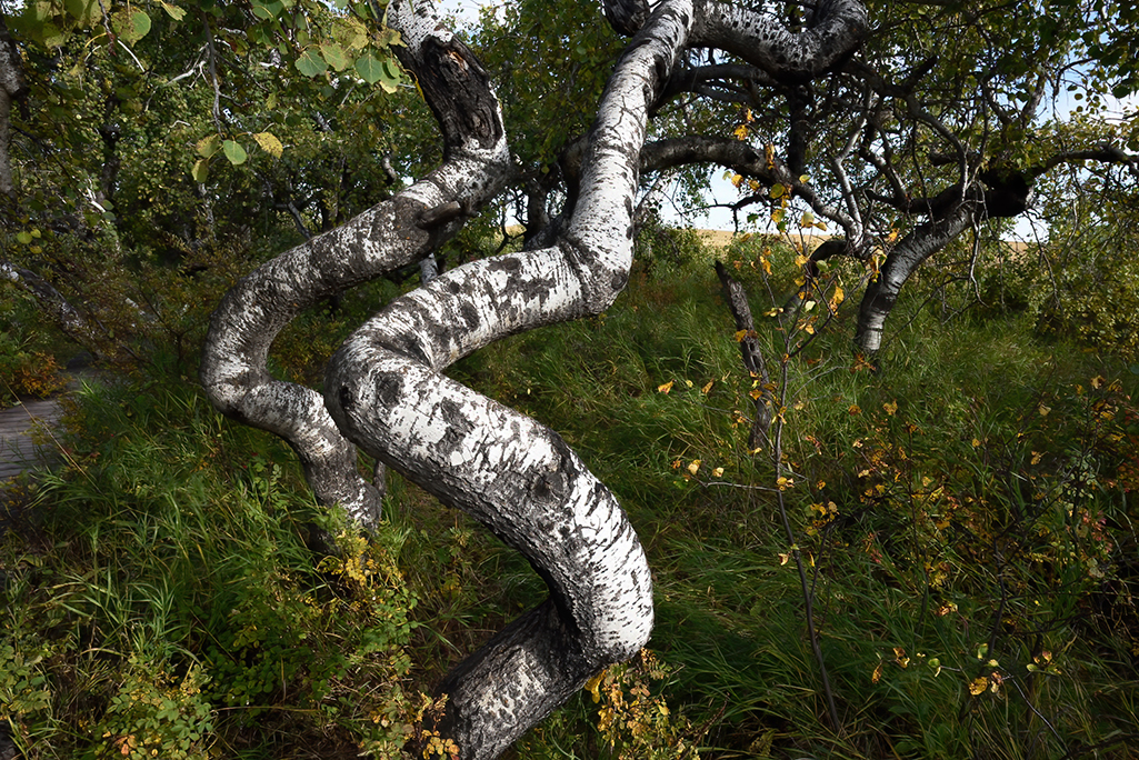 Trembling aspens are the dominant tree of Saskatchewan’s parklands, and for the most part, they all look fairly similar. Except for here. In this small bush in the Thickwood Hills, the trees can’t decide if they should grow up, down, sideways or in spirals. Every branch, every trunk of every tree is twisted and contorted. Yet the trees in nearby bushes are perfectly normal. So what’s going on?