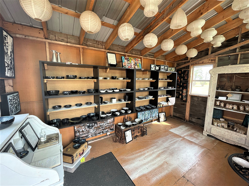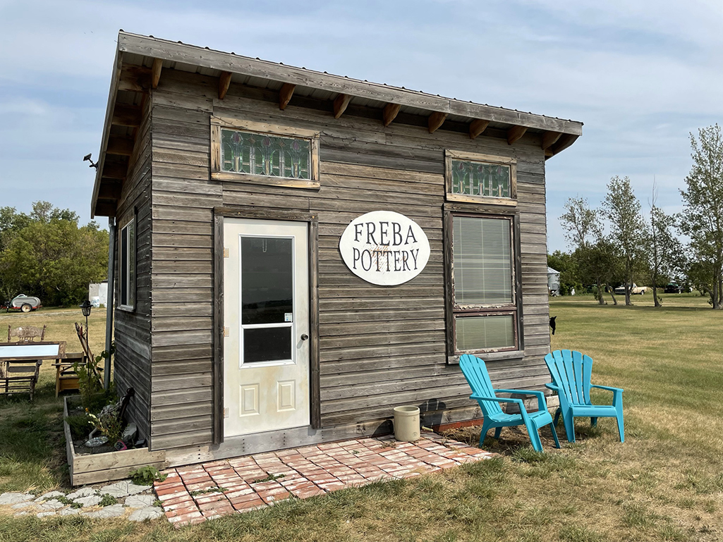 “Would you steal something?” Marea Olafson’s infectious smile and twinkling eyes patiently await my answer. I stand in her highway pottery store, built from reclaimed wood, astounded by her trust in people. Here, 6.5 km east of Dafoe, near Wynyard, Saskatchewan, Freba Pottery runs completely on the honour system. Open 24 hours a day, 365 days a year, my astonishment at not a single theft leaves me open-mouthed.