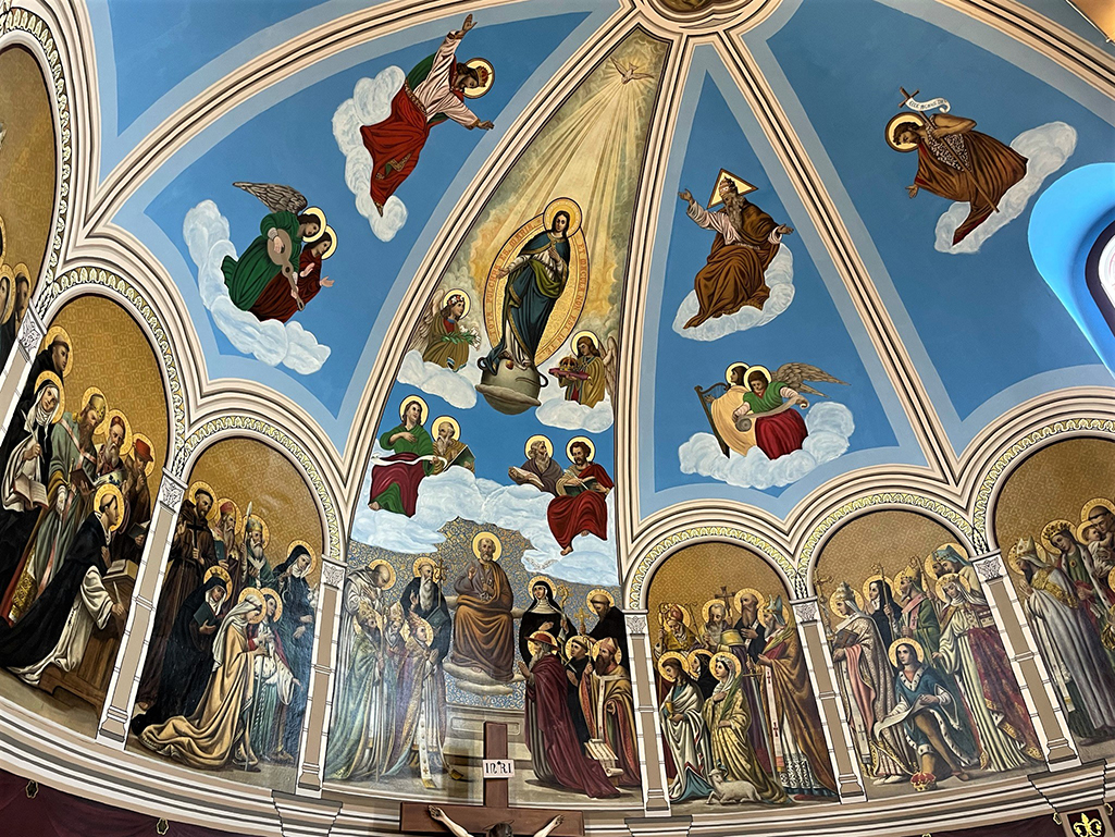 As surprising as the imposing structure is in this rural hideaway, it is the within that the art treasures are found. As doors open into a recently renovated vestibule, one is reminded of Michelangelo and his Sistine Chapel artwork.