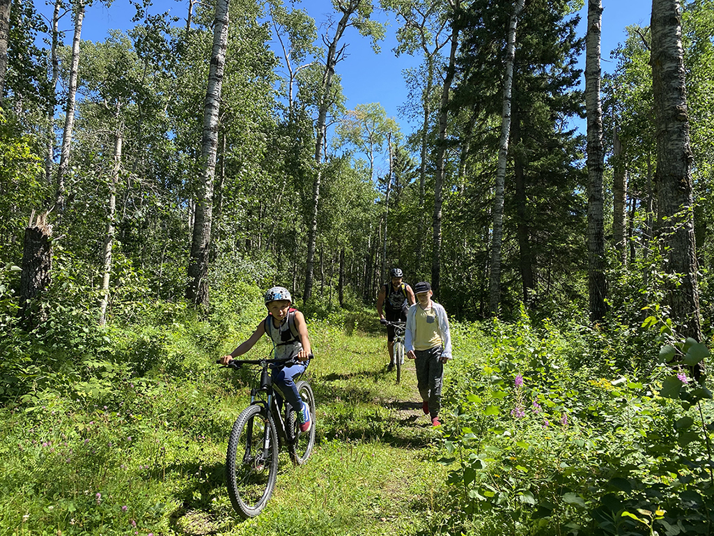 Later, we make the decision to check out the Woodland Nature Trail on our bikes leaving behind my eldest who wants to unwind hoping that this will increase the odds of a nice evening ahead. Starting in the campground at the Jubilee cabin subdivision, the woodsy 1.5-4km trail offers variety and follows at times along the water’s edge. We spend nearly an hour and a half riding and come back exhausted but all smiles. It’s time to sit around the campfire, devour smores and play some cards.