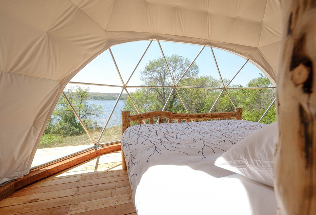 Glamping Resorts Ltd. offers a unique “glamping” experience with two locations in Saskatchewan: Buffalo Pound Lake and Saskatchewan Landing Provincial Park. Its domes are air conditioned and include a private indoor washroom and kitchenette. You and your four-legged friend will enjoy the kilometres of walking trails, scampering along the beach or lounging by your private outdoor firepit.